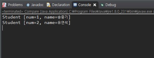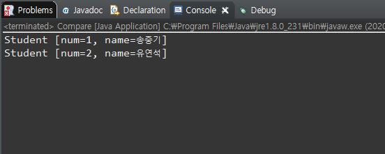- java.lang.Comparable<T>: 원소 스스로 다른 원소와 자신을 비교할 때 사용하는 방법입니다.
